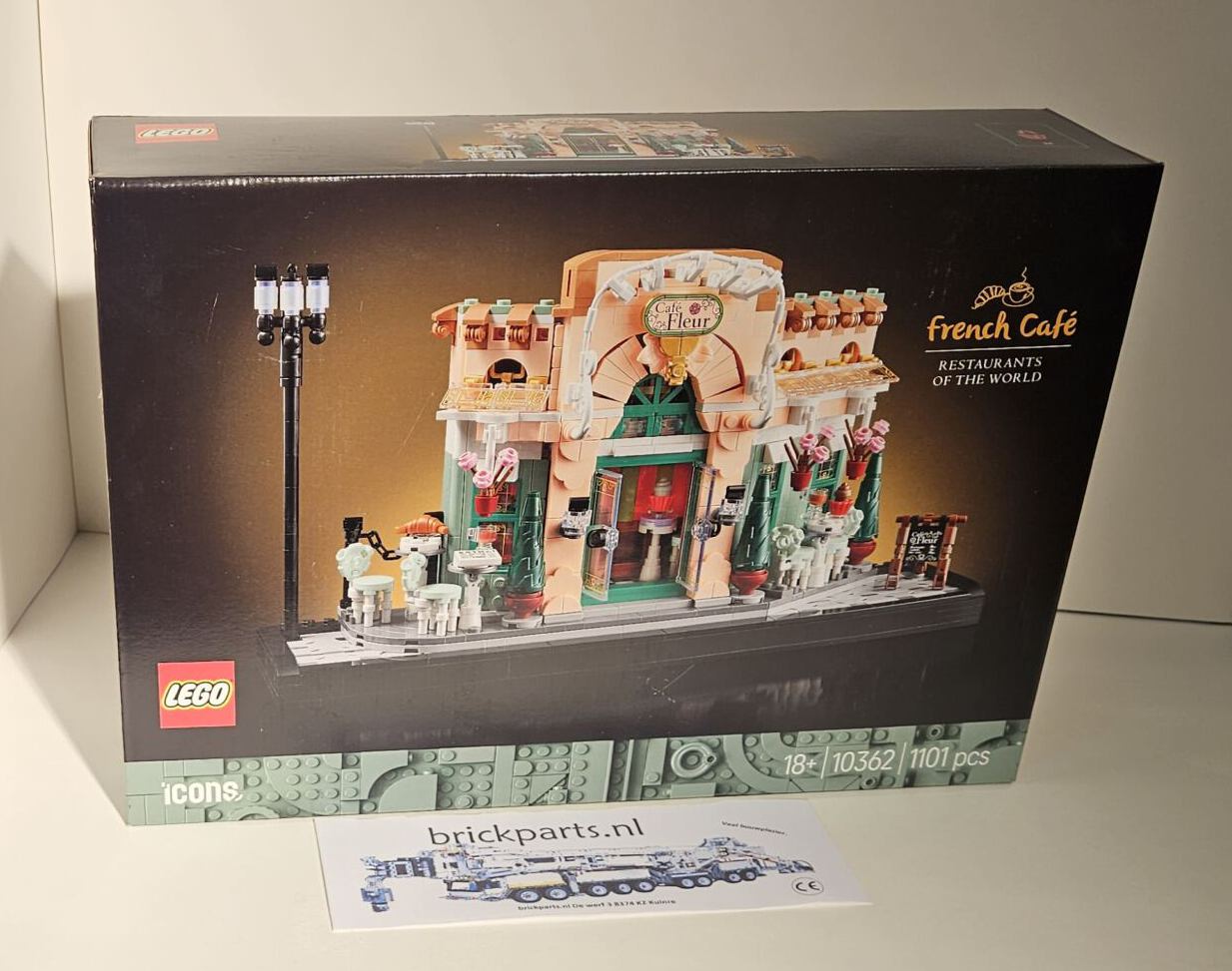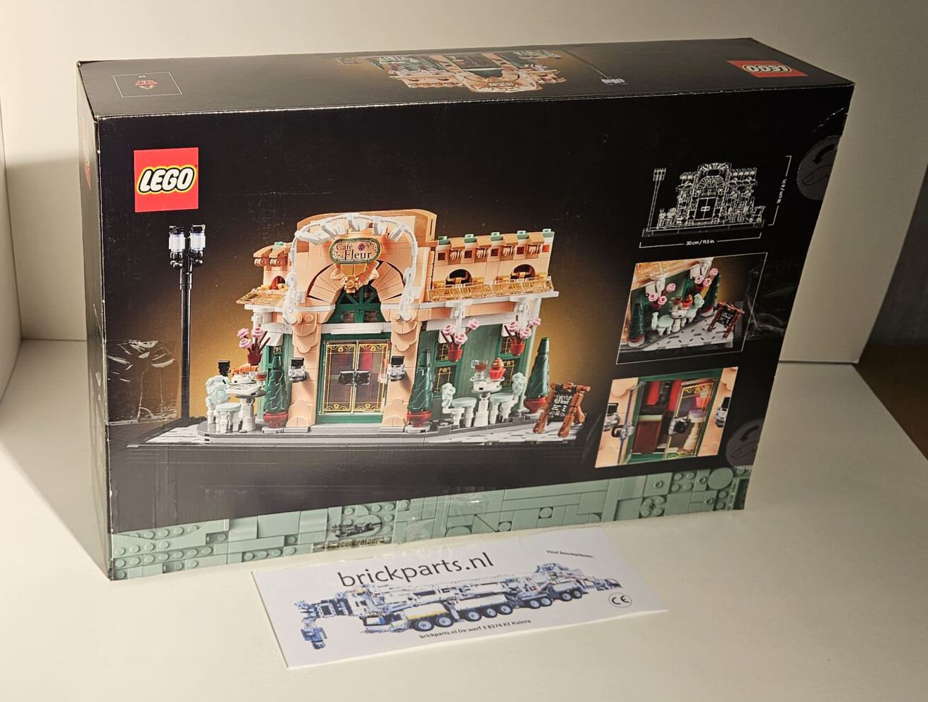 - Afmetingen – het Franse café in deze 1101-delige bouwset is ca. 16 cm hoog, 30 cm breed en 6 cm diep