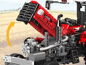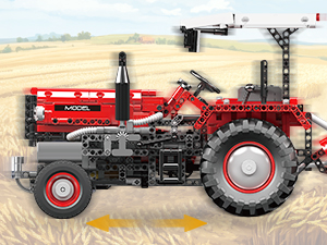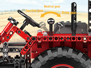 De tractor beschikt over schakelbare rij-, neutraal- en functieversnellingen, waarmee verschillende onderdelen van het voertuig afzonderlijk bestuurd kunnen worden. De openende motorkap onthult het motor- en ventilatorsysteem voor extra realisme en mechanische aantrekkingskracht.